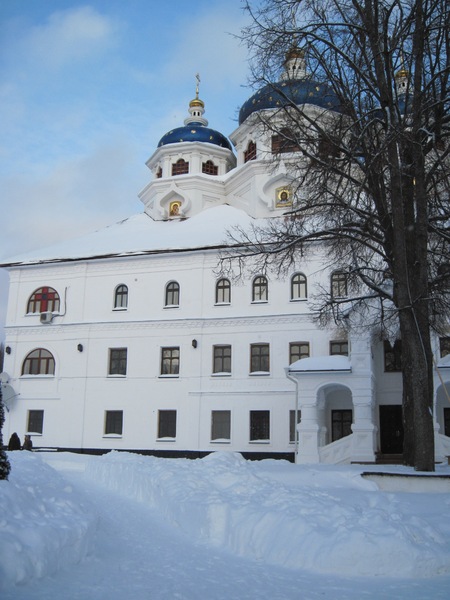 В Ярославской епархии, недалеко от Троице-Сергиевой Лавры в живописном лесном месте, изобилующем грибами, ягодами и целебными травами, на берегу тихой извилистой речки Сольбы возвышаются белоснежные храмы старинной Николо-Сольбинской обители. Местоположение монастыря, и по нынешним временам глухое и затерянное в бескрайних и дремучих лесах, представляется крайне удобным для всех ищущих уединения и истинного удаления от мира. Свою историю Николо-Сольбинский монастырь ведет со второй половины 15 века, и предполагается, что основан одним из учеников преподобного Сергия Радонежского. 1 января 2011 года мы с маленькой группой паломников на ГАЗеле совершили паломничество в эту прекрасную обитель тишины и благодати. Предлагаю Вам увидеть своими глазами эту красоту! Надо сказать, что в этот монастырь я попала впервые прошлым летом в составе группы паломников колесящих в автобусе по маршруту Золотое кольцо России. Много мы посещали мест, но Сольба запала в душу навсегда! Начиная от месторасположения – в лесу, заканчивая рассказами сестрицы монастыря Анны, которая с совершенно детской верой рассказывала и показывала нам обитель, в которой подвизается в монашеском подвиге. В монастыре есть мечта. Со временем возродить на его территории богадельню для престарелых, а сейчас при монастыре живут девочки-сиротки. Потрясающие росписи храма освящённого в честь святой блаженной матушки Ксении, Успенский величавый собор с необыкновенной деревянной резьбой внутри, поземная церковь во имя преп. Антония и Феодосия Киевопечерских, храм в честь преп. Сергия Радонежского который как две капли воды похож на храм с картины Нестерова «Видение отроку Варфоломею» и котнечно же ещё не достроенный но уже манящий к себе храм в честь святителя Спиридона Тримифунтского чудотворца! А источник?! Уютная часовенка над ним вас ждёт! Только не забудьте купить бутылочки для воды и взять и дома сорочку для омовения. Я искренне желаю всем побывать в этой обители, чтобы по молитвам небесных её покровителей Святителя Николая и преп. Сергия Господь услышал ваши просьбы и молитвы!
