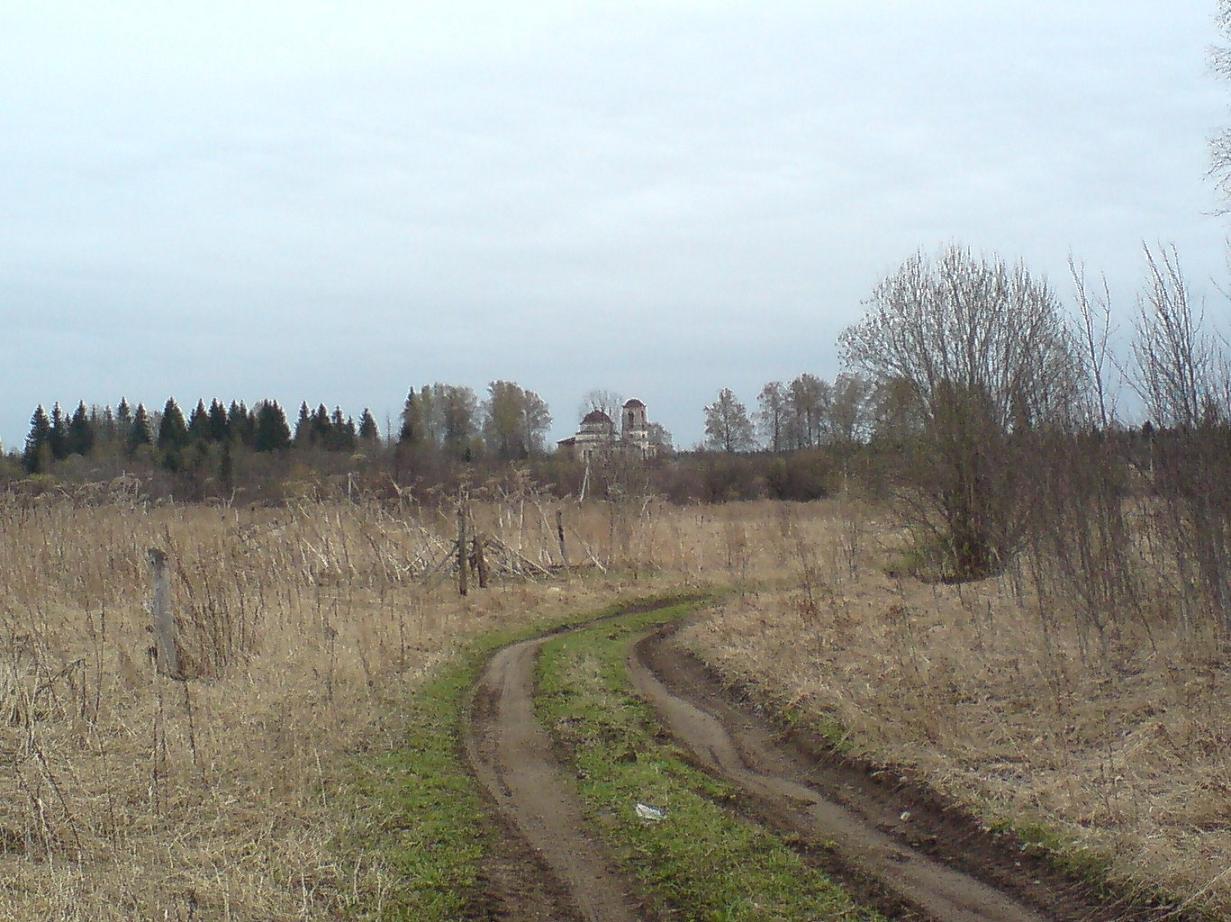 Ну что ? Лирическую часть прочитали ? Теперь в путь. Видите на карте Селижарово ? А из него дорога на юг ? Нам с вами туда. По карте кратчайшая дорога из Селижарово до деревни Краски, а там свернуть с трассы и прямиков в Лошаково. Мы тоже туда дёрнулись. Ага… Не тут то было. Может быть летом там и можно пробраться полями и лесами. Но в мае это просто нереально. Расспросили местных жителей. «Да там и раньше то никогда дороги не было, а сейчас тем более» – сказали нам они. Так что эту дорогу мы советуем только маньякам, которые любят заниматься вытаскиванием машин из болота. Всем остальным лучше ехать по дороге до села Манина Гора, там будет поворот на Ольхово и далее Борисово. Дорога асфальт и хороший грейдер. Любая пузотёрка до Борисово доедет без проблем. А вот дальше… До нужного места километра три по сельской раздолбайке и километра полтора пешком. В хорошую погоду можно попробовать эти три километра проехать и на недоприводе. Всего три-четыре засадных места. Дорога фиговая, но не смертельная. Хотя лично я бы на недоприводе не поехал, по крайней мере в мае. Хотя летом может и подсохнет. На полном приводе езжайте смело. Но на каком бы танке вы не ехали, вряд ли вы доедете дальше деревни Лошаково. Здесь машину лучше бросить и оставшиеся полтора километра прогуляться по лесной дорожке. Хотя лично мы оставили свою «Ниву» чуть недоезжая Лошакова у очень глубокой лужи N 56.44.518, Е 33.40.187 и дальше пошли пешком. Одевать ли сапоги ? Как хотите. Дорога конечно грязная и мокрая. Но лично я, прыгая с кочки на кочку, добрался до места не промочив ноги в городских полуботинках. Итак, вход в церковь N 56.44.899, Е 33.40.803. Курган N 56.44.897, Е 33.40.696. Удачи.