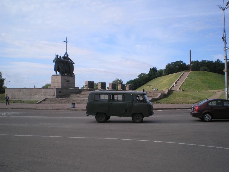 Ночной переезд из Гомеля занимает времени немного, расстояние в 70 км поезд проходит АЖ 3 часа (граница). Стоимость билета - на дизель около 50 грн, плацкарт мне обошелся почти в 100 грн! (это 400 руб). 4 утра Чернигов. двигаюсь пешком от вокзала к центру, идти далековато, но ничего, хоть почувствую город... Центр, первой встречается "скандально известная" Пятницкая церковь, оккупированная нечестивым Филаретом. Здесь же памятник Хмельницкому - как будет ясно, союз именуемы "Переяславской Радой" был освящен именно здесь... Ну и Дух Праздника - яблочный дождь!