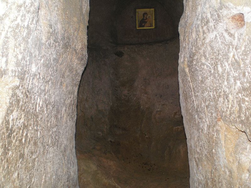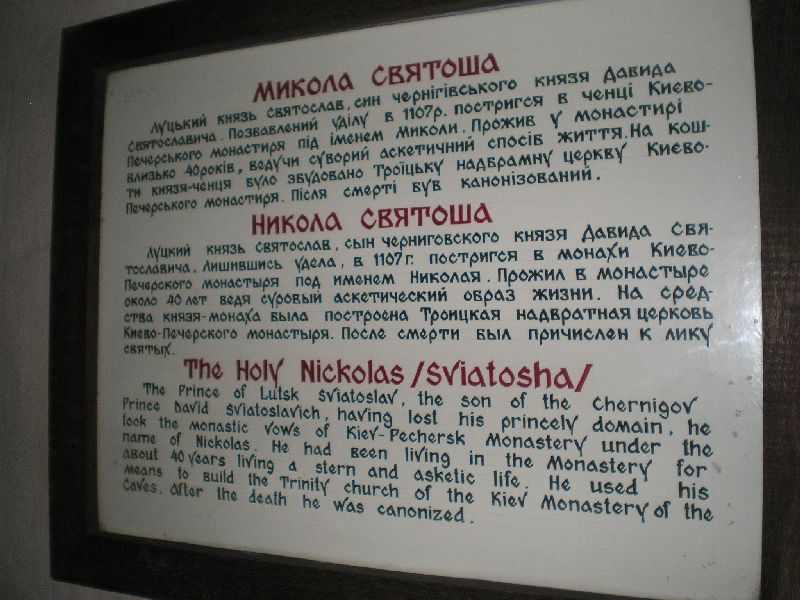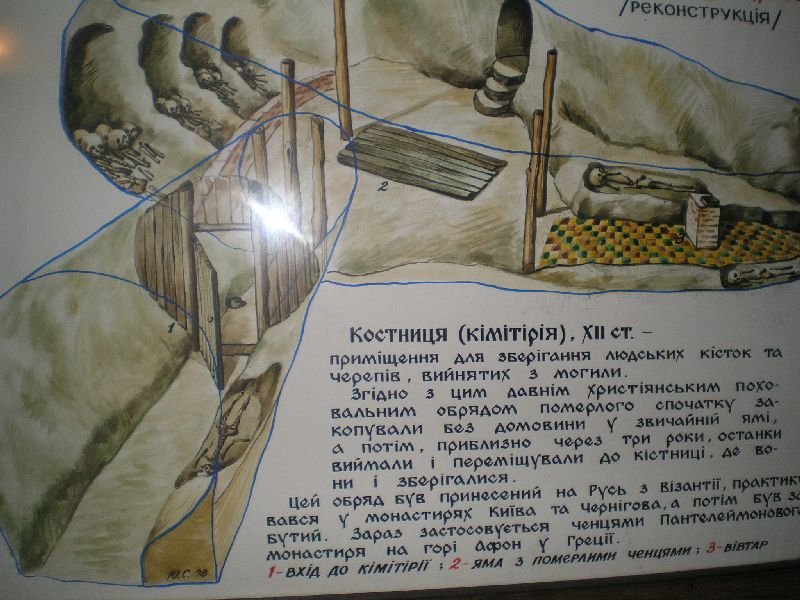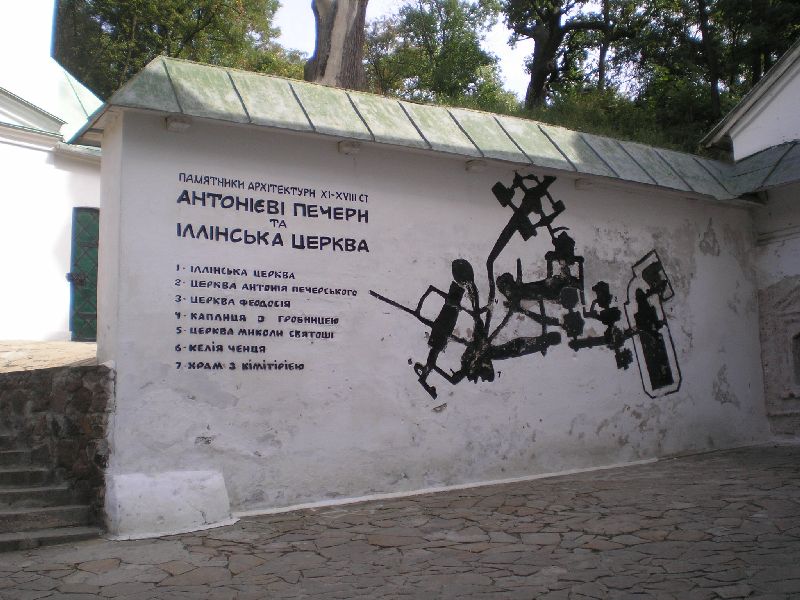 Далее подъем на Болдину гору и подход через остатки старого кладбища к Ильинскому пещерному монастырю с пещерами прп Антония Печерского, в которых прп Антоний скрывался от опалы киевского князя... По пути - могила известного украинского писателя М. Коцюбинского и его супруги...