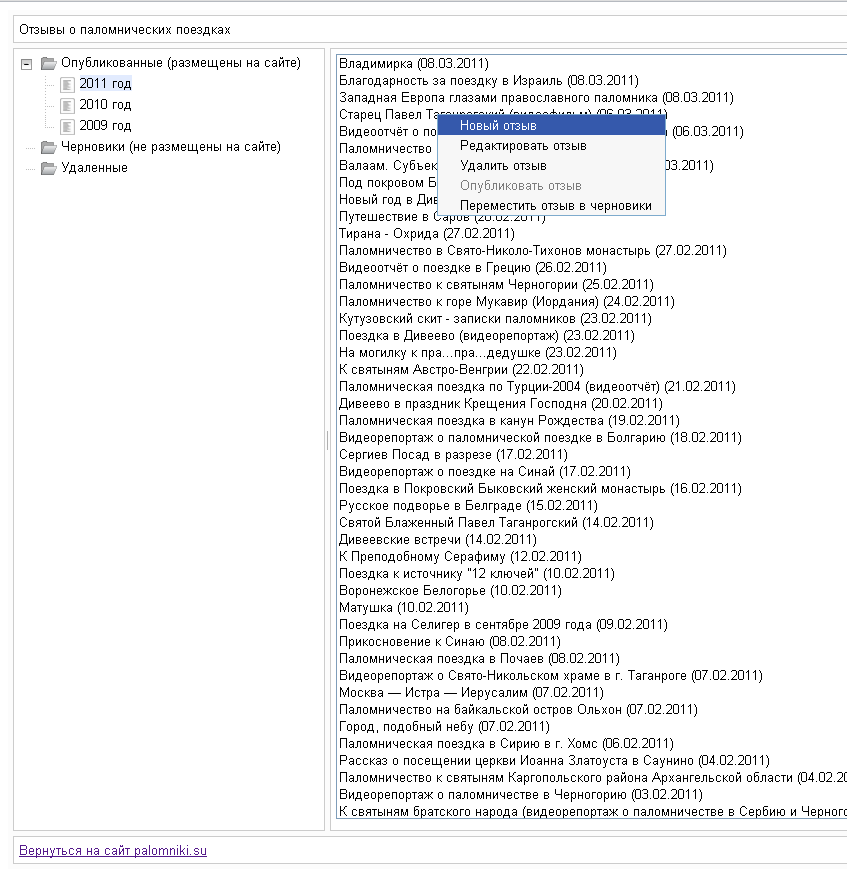 Новое святое место - позволяет добавить святыню, если она еще отсутствует на сайте, но тем не менее, была посещена во время паломничества и достойна добавления. Подробно о добавлении святыни написано