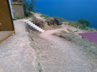 Территория пансионата. На последнем снимке, под дальней лестницей, расположен склад строительных смесей.