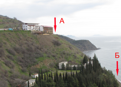 Я имею в виду склон горы, который от нового корпуса пансионата идет вниз к морю.