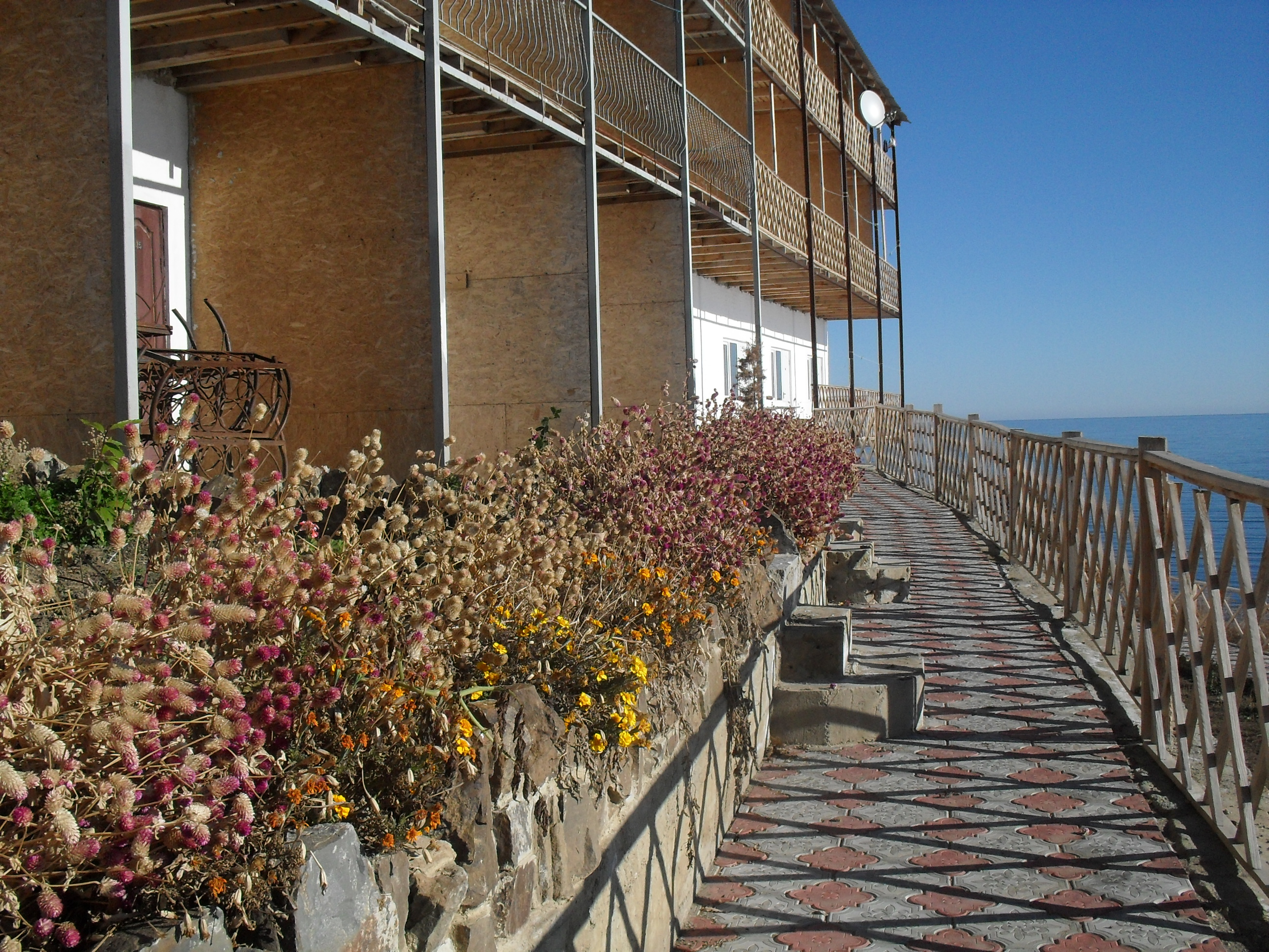 Сегодня своими глазами увидела, как изменилась территория пансионата.  Проведена огромнейшая работа по благоустройству – установлены ограждения, тротуары выложены плиткой , а для детей теперь есть  площадка. В трапезной все чистенько и аккуратненько, пол плитка, а новая мебель, надеюсь, столь же удобная, как и красивая. Специально прошла по спуску к морю, никаких неприятностей там не видела, даже наоборот, на спуске установлены скамейки. Можно присесть и передохнуть во время подъема и полюбоваться красотами.  Слава Богу!
