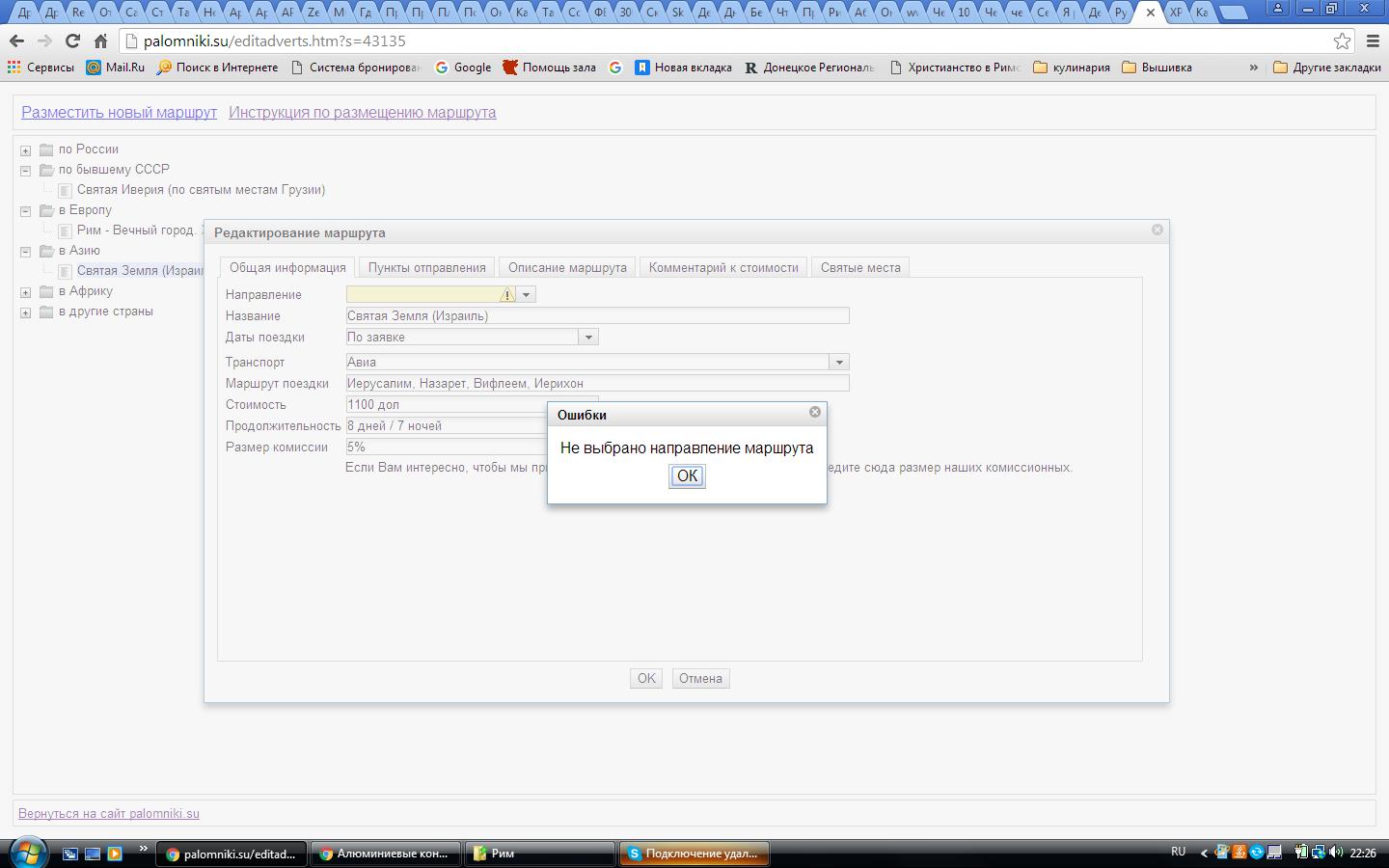 Добрый вечер! не получается редактировать маршруты. Не выбирается направление, выдает ошибку... ![]()