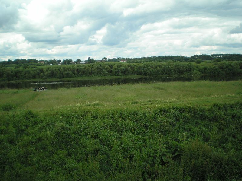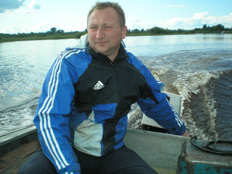 Дале пешком возвращаюсь в Кириллов. Прохожу переправу у канала, трапезничаю у магазинчика. Длинная прямая дорога, мимо автостанции, заканчивается у Кирилло-Белозерского монастыря. Начинаю его осмотр. Громаднейшая территория. Монастырь как бв в два "яруса". Самый внутренний – тот и есть сам монастырь. В храме мощи прп Кирилла Бело-зерского. Канун Рождества Иоанна Предтечи. Заявляю о себе в храме. Меня ведут к настояте-лю, тот благословляет в "странноприимный дом" – местная паломническая. Паломническая весьма убогая, на две половины – мужскую и женскую. Вода из умывальничков, нужно но-сить… Определяю вещи, заряжаю телефоны, просушиваюсь. Стоим Всенощное бдение Рожде-ства Иоанна Предтечи, затем трапеза. В паломнической выдержка из "Апостола" – принимать до 3-х дней во Славу Божию, а затем по трудовому послушанию. Из братии запоминается рБ Александр, который тут проживает для прохождения процедур в местной больнице. У него т.н. трофическая язва на ноге, он сильно страдает. После вечернего правила пробую его "лечить" по четкам – 150 "Отче Наш"… 7.07. Вторник. Утро – Литургия и причастие. Всей братии монастыря аж три монаха во главе с игуменом Игнатием…Да и один послушник, бойкий мальчик Антоний… После литур-гии трапезничаю и выдвигаюсь в район Вологды. Планирую встать в Новленском и прояснить пути переправы на противоположный берег Кубенского озера через Спас Каменный, либо про-сто поснимать и двигаться через Вологду на Устье… Фото Кирило- Белозерского и так хорошо известны, так что их не выкладываю В Новленском примерно в 13.30. Ищу лодку вдоль речки Ельма. Из разговора с моло-дежью, выясняю, что в селе прошла бурная ночь "накануне Ивана Купала" и все спят. Телефон-ные звонки знакомым ничего не дают. Мне советуют пройти в село Коробово в 3 км, это прямо на берегу Кубенского озера, может там что-то выйдет. Расспросы в Коробово безрезультатны. В одном месте строится сруб дома, спрашиваю мужиков, кто бы проехал на Спас Каменный. Все шутят, а один человек вызывается. Звать Сергеем, примерно лет 40-45. Сам он из Вологды, уроженец Коробово, сейчас у него участок в селе, обнесен каменной стеной, кулисные двери открывают въезд на территорию. Иномарка-джип. Приглашен на обед, после едем за бензином, заряжаем 50 л. плюс масло. С меня 1300 руб. Вот все и готово. Сергей жалуется , что ночью кто-то увел его лодку, еле нашел… Последствия сельской гулянки. С собой Сергей берет жену Ольгу, дает куртку, что очень кстати, скорость приличная да и ветер свеж. Пересекаем Кубенское озеро, Спас Каменный красиво вырисовывается из вод… На острове встречает нас злой пес, все время лает и пытается броситься. Жилое строе-ние одно – там музей обители, найденные там раритеты, крест с колокольни, остатки колоко-лов, иконы… Восстанавливается колокольня, на ней слабо копошатся трое рабочих. Действует часовня. Мощи прп Василия Спасо Кубенского погребены под руинами взорванного Спасо-Преображенского Собора… Один из рабочих спускается к нам, показывает музей, отгоняет пса, который уже успел порвать мне зубами сумку. Он жалуется, что в этом году вовсе нет финан-сирования, работы стали, так что и туго даже с продуктами. Ездить приходится далеко за 8 км в Устье… Отправляемся дале на Устье. Входим в устье реки Кубины, на правом берегу крупный поселок Устье, а напротив село Чирково с красивым погос
