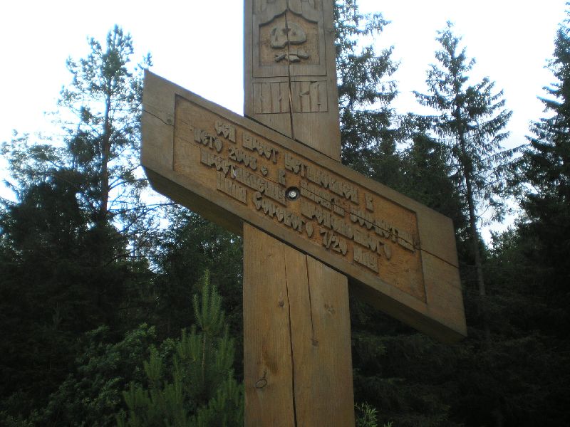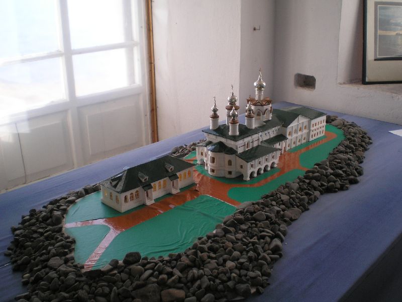 Далее Кириллов. Из Ферапонтова выйдя на трассу после нескольких неудачных попыток проголосовать, просто двигаюсь в сторону Кирилловского поворота. Водитель на иномарочке сам тормознул. Предлагает подвезти. Едем. У Кириллова хочу расплатиться, он смотрит на меня странно - я же в попутном направлении... Для наших мест (Украина) вещь вообще нереальная... Сразу подворачивается таксист. За достаточно нормальную плату (заказов мало) мы с ним едем в Нило-Сорскую пустынь. Дорога 18 км. лесом... Территория монастыря занята психиатрической лечебницей. Доступа на территорию нет... К 500-летию прп Нила Сорского рядом на красивой поляне за поселком - памятный знак прп. На обратном пути - заезжаем в Горицы. Очень красивое место с видом на Волго-Балт, разлив Шексны... Нило-Сорская