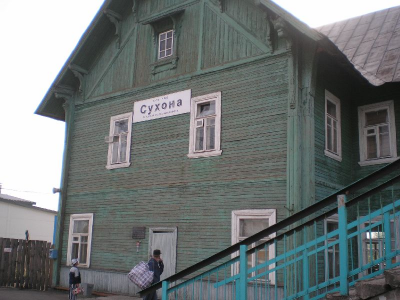 8.07. Среда. Выхожу на Глушицкий монастырь. Утро на станции Сухона. Бывший пе-ресылочный пункт репрессированных. Сохраняется вид 30-х годов
