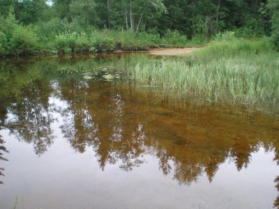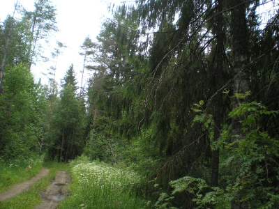 В Вологде пересадка на Шуйское направление. Дале путь на Авнежский погост, мо-гилы Гргория и Кассиана Авнежских, мучеников 14 в, убиенных во время татарского набега на Вологду. В Вологде задерживаюсь на 40 минут, автовокзал забит, уикенд, все выезжают. Авто-бус на Шуйское в 18.00, мне до Пионерского, а затем по дороге 7 км до Заречья, где собственно и есть Авнежский погост. Пионерское в 3-х км от Шуйского. Отворотка на Змейцино, дале по безлюдной дороге. По пути два села, первое разрушено полностью, возле него ремонтирует колесо "Волги" паре-нек, запаску ему привез из Шуйского на Москвичике мужичок. Справляюсь Заречьем, "Вы его не перейдете". отвечает мужичок, я думаю, что там река, которую не перейдешь просто так, оказывается, что значение этого слова – не минете… Как бы там ни было, продолжаю путь, на-ступают сумерки и думаю, где бы поставить палатку… Меня догоняет та самая Волга, паренек за рулем приглашает подъехать до Заречья. "Я еду к батюшке на погост, он там сегодня ночу-ет…" Во новость! Встречаемся с о. Алексем, он ночует в деревянной каморке, я ставлю палатку вблизи кострища, подкладываю скошенной травы под днище. О. Алексей обходит со мной погост, он хочет учредить на этом месте нечто вроде скита. На берегу Авнежки ставит баню, совсем по-русски, первое дело. Вода в Авнежке. Территорию погоста оградил временным забором от кладбища, дабы не проводили захоронений у храма. Это – место силы. Характерны деревья, имеющие по 6 – 8 стволов! Особенно старая восьмиствольная береза. Прп Стефан Махрищский, утвердивший это место первым, в Махрищах под Москвой имет нечто подобное… Трапезнича-ем вместе, у батюшки оказалась 0.5, мы немного разговелись…(ну не всю!, половину). По пре-данию, прп Григорий и Кассиан заповедали на месте их захоронения поставить церковь Геор-гия Победоносца. Что было выполнено не сразу, а после она была разрушена. О. Алексий рас-сказывает, что его напарник, который ночевал до этого на погосте на втором этаже колокольни убежал ночью увидав сияние на месте мощей преподобных. С утра о. Алексей и его водитель меня должны вывезти на трассу. Дале мой путь на Бушуиху и Грязовец