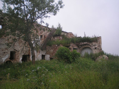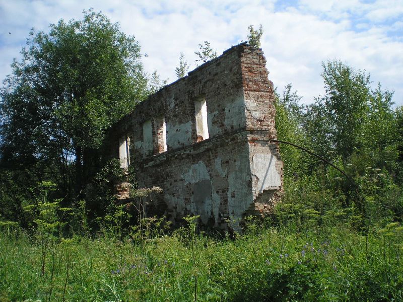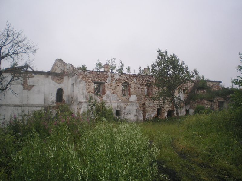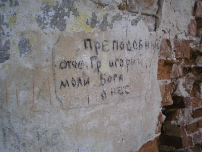 Обратный путь проще, дорога как-то сама находится, только сильно болят ноги. Доби-раюсь к Покровскому погосту поздно, на электричку в Сокол (на 17) опаздываю. Выхожу на дорогу, двигаюсь на дер. В. Двор. Подвозят добрые люди 3 км, идти тяжело. Автобус около 20.00! Ждать 2.5 часа. Время проходит в дремоте от усталости. Вечером в той же гостинице, дежурная иная, упирается из-за украинского паспорта, но в конце концов устраиваюсь за 250... 9.07. Четверг. Ноги болят сильно. Сегодня Лопотово. Монастырь прп Григория Пельшемского. Дорога показана через село Дор, наиболе краткая. Описание у меня из Каднико-ва, но там дальше километров на 5. Между Соколом и Кадниковым 13 км. Хорошо, что води-тель знает отворотку на Дор! На село Дор (оно в 3 км от трассы!) дорога старая и заросшая и незженая. Это уже должно бы насторожить! Пройдя 3 км заболоченным лесом, выхожу к селу. Села то и нет – руины домов. Открываются луга долины Пельшмы. Пельшма достаточно боль-шая река, похожа на Донец наш. Пробираюсь зарослями крапивы и трав выше роста. Вот домик в качестве дачи с советским флагом. От него спуск к реке через крапиву. Вопрос решаемый – моста нет но есть его остатки - колья в воде. Перебираюсь по кольям и бревнам с палкой в руке через Пельшму вначале без рюкзака, а затем и с рюкзаком… На левом берегу подходит дорога из Кадникова. Дорога превращается в тропу среди лугов и травы выше роста… Это дорога в Лопотово. Двигаюсь по тропке, изредка выглядываю из травы осмотреться. Вдруг под ногами вижу свернувшуюся черную змею! Пытаюсь шуршать, дабы е прогнать, когда это удается, про-скакиваю это место, и дальше смотрю под ноги, сверяя каждый шаг. Опять змея! Побольше, они отдыхают на примятой траве. Луг ими просто кишит! Вот и Лопотово. Руины монастыря слева на пригорке. К ним то и ведет тропка, дальше старые кучи мусора, крапива. Величествен-ные развалины. Нахожу храм прп Григория Пельшемского, в алтаре валяется сетка железной кровати, хлам и мусор. У жертвенника закопчено свечой "Преподобный отче Григорие, моли Бога…" Кстати, из русских святых преподобных - Григорий Пельшемский просто уникален ! Его лет жизни было 127!!! Ну кто еще таков? Вот и вся история. Некогда огромный и величественный монастырь. В обратный путь. Опять встреча со змей… На Кадников не иду – далеко все же, знако-мым способом перебираюсь через Пельшму, выхожу на трассу и сразу уезжаю на Кадников. В дальнейшие мои планы входила Сянжа – Подмонастырек, монастырь прп Евфимия и Харитона Сянжемских.
