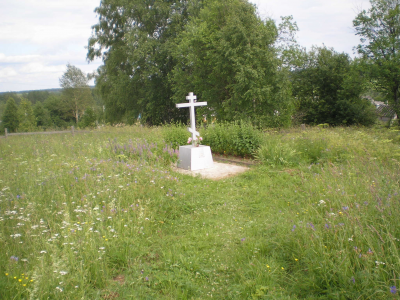 Бедная деревянная церквушка. Ключница живет где-то в В. Дворе, отпирают церковь крайне редко… На дверях записка с просьбой не взламывать двери… Поклоняюсь месту, двигаться предстоит на Сосновец – монастырь Дионисия и Амфилохия Глушицких. Следующий "облом" дает моя карта. По ней прохожу деревню Герасимово, почти уже нежилую, а вот к следующей деревне Бессолово, дороги практически нет, маленькая тропка, теряющаяся по лугам. Бессолово, как и следовало ожидать, пустое село. В одной избе правда слышу собачонку, направляюсь туда. Двор выкошен, выходит хозяйка-дачница. Она объясняет, что дальше дороги нет. Была, а сейчас уже нет. Под Сосновцом вообще топь, непроходимо. На Сосновец ходят через Герасимово, мимо силосных ям по лугу и в лес. На карте эта дорога не нанесена… Возвращаюсь назад 3 км, сворачиваю на дорогу на Сосновец. Через 2-3 км дорога пересекает в лесу вброд Глушицу и выходит на е правый берег. Дорога все идет лесом . Очень глухим и еловым… Начинаются большие поляны, начинаются развилки. Картой пользоваться бесполезно, ориентироваться сложно делаю два круга по полянам и начинаю задумываться, а куда же идти в обратном направлении? И где же Сосновец. Подступает нечто вроде отчаяния. Последняя попытка, пройти по старой просеке, примята трава… И вдруг, О ЧУДО! передо мной монастырь Дионисия и Амфилохия, рядом разливается широкими лентами озер Глуши-ца… Луг заболочен, дорога по нему устлана спинками старых железных кроватей. Видимо, ра-не здесь было тоже некое ИТУ (колония). Сосновец безлюдный. В корпусах окон нет, на месте храма стоит крест прп Дионисию и Амфилохию… Слава Богу!
