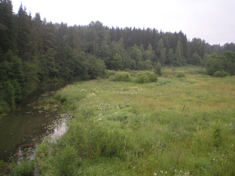 На трассе вовремя. Автобус есть. Спас-Нурма. Нуромский погост находится в живописном месте. Нурма имет крутые берега, лес ве-личественный. В 1 км она впадает в Обнору. Нуромский погост вырисовывается с дороги от моста через Нурму. Погост старинный, а вот церковь оказывается разрушенной. Лишь в нижнем ярусе создан алтарь и маленький храм. Службы там бывают от Павло-Обнорского монастыря. Редко. Удается снять через форточку внутренность храма. У Ю-з стенки нечто вроде раки, может и мощи прп Серния Нуромского, либо они под спудом… До Юношеского, где находится Павло-Обнорский монастырь около 7 км. Завтра праздник Петра и Павла, как раз кстати. Дорога из Спас Нурмы идет полями и перелесками, по-ля засеяны или клевером или ячменем, дорога прямо по ним, вновь проезженая, что облегчает ориентацию. Кстати - дорога по которой идешь со Спас-Нурмы в Павло-Обнорский - путь которым ходил на духовную беседу прп Сергий Нуромский к прп Павлу Обноскому... Не сильно-то и поменялась там местность...
