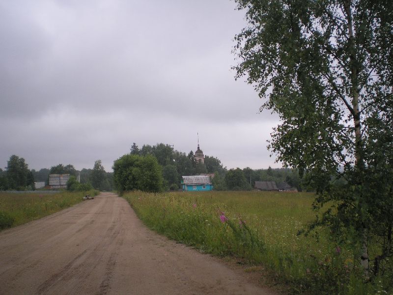 В 9.00 я на трассе. Почти сразу меня подбирает автобус, доезжаю до Бушуихи. Идет дождь, даже сильный. В Бушуихе остатки монастыря прп Арсения Комельского. Мощи прп в храме под спудом. Сейчас это здание средней школы… Нахожу без труда. Прямо на Шуйской трассе. Дале путь на Грязовец. Подъезжаю попутно до развилки Вологодской трассы