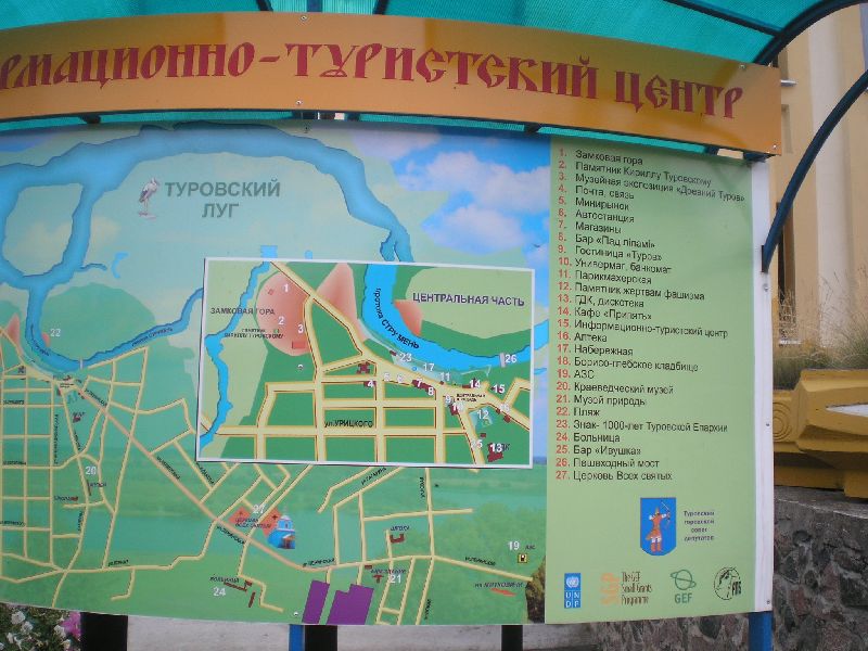2009, под праздник Преображения Господня... Господи Благослови. Экспромт. Ехать не собирался. Идея вызрела за сутки, когда прочитал в Инете о туровских Крестах... Почему-то мне казалось, что это вот возле Чернигова, но вышло значительно дальше. 17.08 - взял транзитом билеты - Харьков -Гомель, и в 5 утра из Гомеля на поезд Москва -Брест до ст. Житковичи. Проблема с деньгами - белорусских рублей (БИРов) в Харькове в помине нет! Ну нигде, ни в одном банке! Тем не менее еду, выезд по жаре в 15,00... Не все потеряно, у проводниц удается купить БИРы, по нормальному курсу (торгует буфетчица), примерно украинской гривне 1000 БИР - 3 грн. Там 1000 идет за рубль. Белорусская граница, 12 ночи, погранки с ноутбуками, все вносится "в базу", шпион (паломник) незаметно не просочится! Гомель. 1 ночи. Визитка города - советского типа вокзал, все как раньше... Кстати это ощущение не покидает везде в Белоруссии. Здесь испытываешь ностальгию по старым временам юности, в этом есть свой шарм ! О самом Гомеле - город исключительного порядка - все ездит, функционирует, как впрочем и во всей Беларуси... Вот несколько его достопримечательностей - памятный знак земляку - конструктору Сухому (СУ), Дворец графа Румянцева, вид на реку Сож и прилегающий парк... Здесь же и кафедральный собор, в нем мощи схимонахини Манефы, местночтимой старицы, подвижницы. Весьма почитаем здесь прп Иоанн Кормянский, его мощи в с. Кормяны, от Гомеля недалеко...