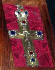 Тоже одно из чудес: столовый прибор дорогого батюшки Иоанна. Вы, наверное, все слышали о таком подвижнике, протоиерее Петре Белавском, подвизавшемся в Мариенбурге. Этот столовый прибор ему подарили еще в начале 20-х годов, когда был уничтожен Андреевский собор, закрыта квартира. Тогда часть святынь сохранили люди и передавали священникам. Он хранил эту святынечку всю свою жизнь, а уже его благочестивые дочери передали в музей-квартиру.