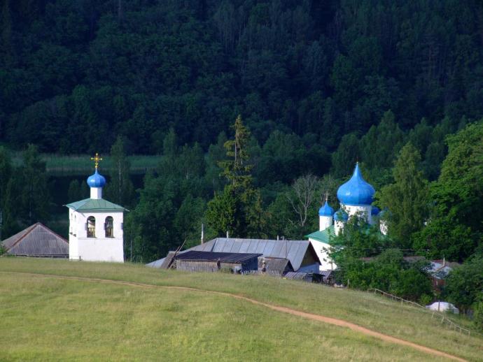 От построек монастыря можно проити мимо огородов к озеру, в которое течет и ручей из святого источника.