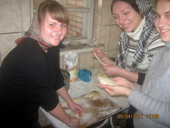 - Монастырь – место особое, здесь физически ощущается тишина, мирская суета остаётся где-то далеко - за монастырскими стенами. Жизнь здесь течёт по заданному ритму, такому, чтобы душа возрастала: труд и молитва – в любви, согласии и тишине. Прочитав вместе с насельниками монастыря утреннее молитвенное правило, отслужив молебен, мы все отправились трудиться. Братья принялись усердно расчищать территорию монастыря от остатков выкорчеванных деревьев (корни пришлось несколько раз вытягивать машиной), а сестры несли послушание в трапезной и в келейном корпусе. Насельники монастыря очень обрадовались вкусным домашним пирожкам и вареникам с картошкой, с любовью и молитвой приготовленным сестрами.