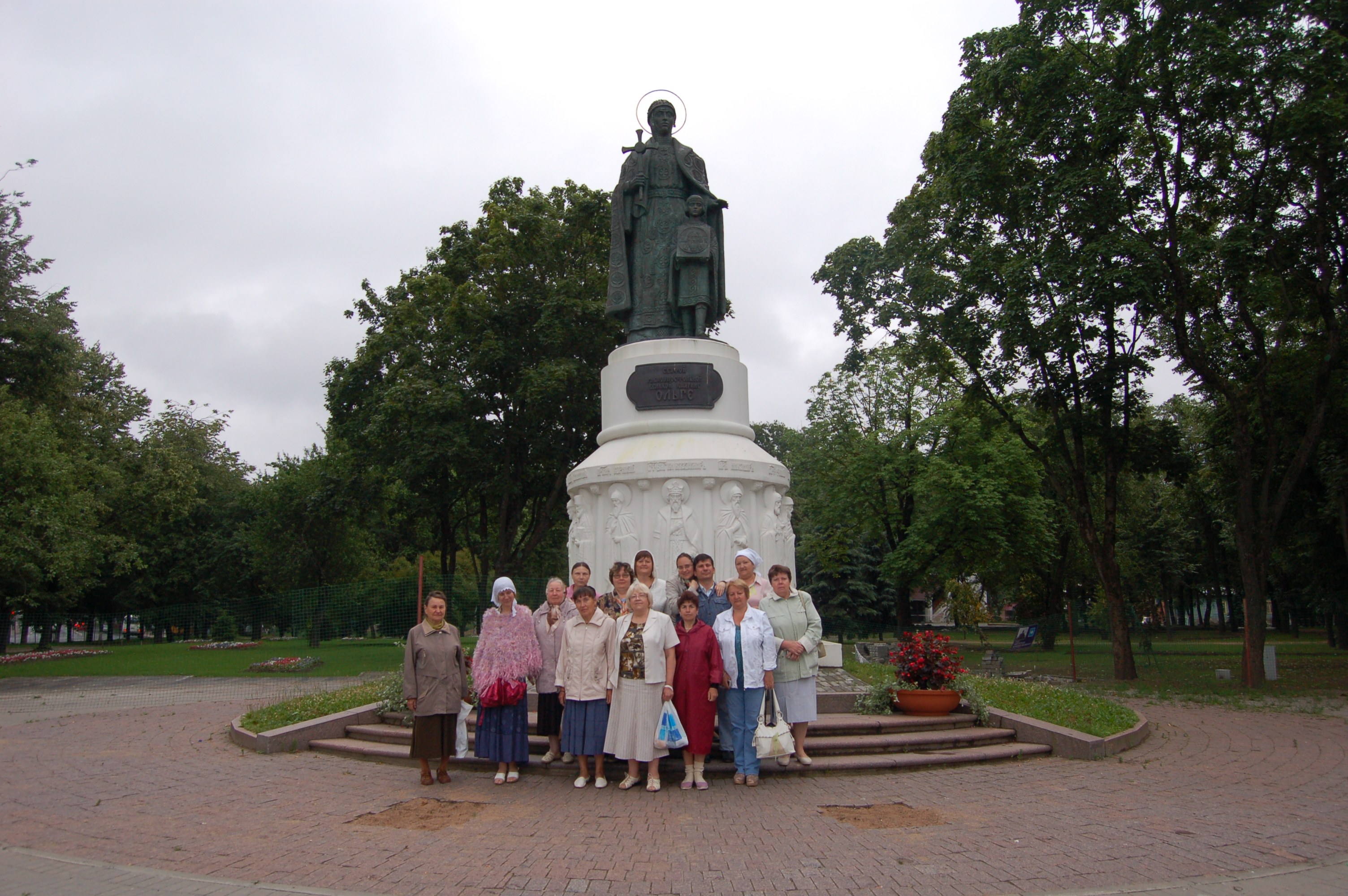 Позавтракав, мы отправились в храм Александра Невского, где встретились с нашим псковским экскурсоводом Валентиной Павловной и отправились на родину княгини Ольги в село Выбуты. Дорогой Валентина Павловна рассказала нам о псковских десантниках, так как у них полковой храм. Ее рассказ так впечатлил наших паломников, что у многих на глазах были слезы.
